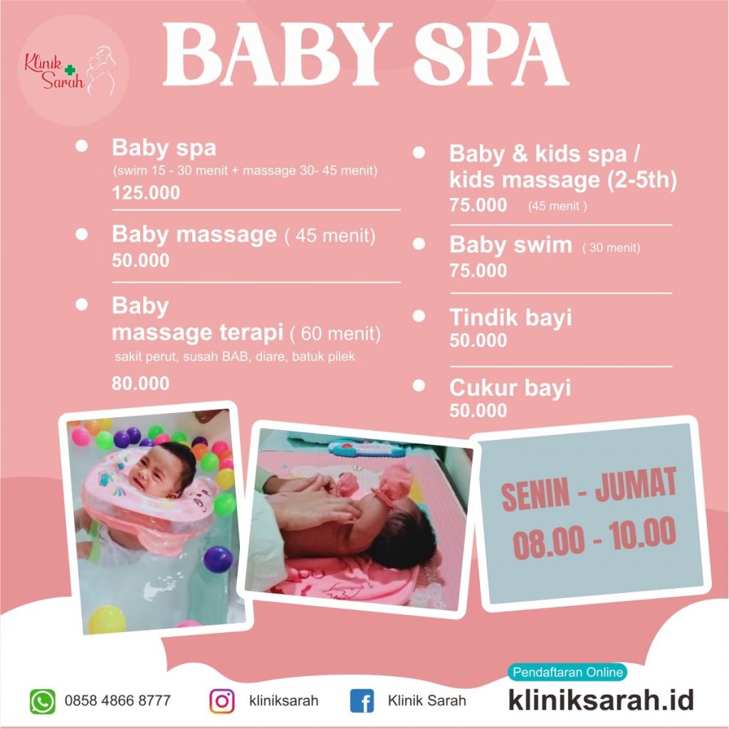 Ajak juga buah hati Ayah Bunda yang berusia 3-12 bulan untuk menikmati fasilitas “Baby Spa” di Klinik Sarah